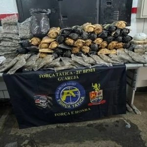 Uma denúncia levou a polícia militar a localizar um grande depósito de drogas em uma área de mata na região da Praia do Perequê, no Guarujá, no litoral paulista.