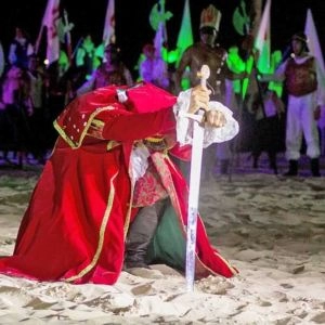 Unindo teatro, música e artes visuais, a encenação transforma a areia da praia em palco para narrar a fundação da primeira cidade do brasil, reforçando a importância histórica de São Vicente para a formação do País. Reconhecido como patrimônio cultural, o evento também atua como instrumento de memória, identidade e educação histórica.