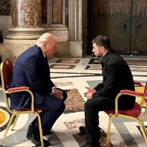Trump e Zelensky se encontram no Vaticano.